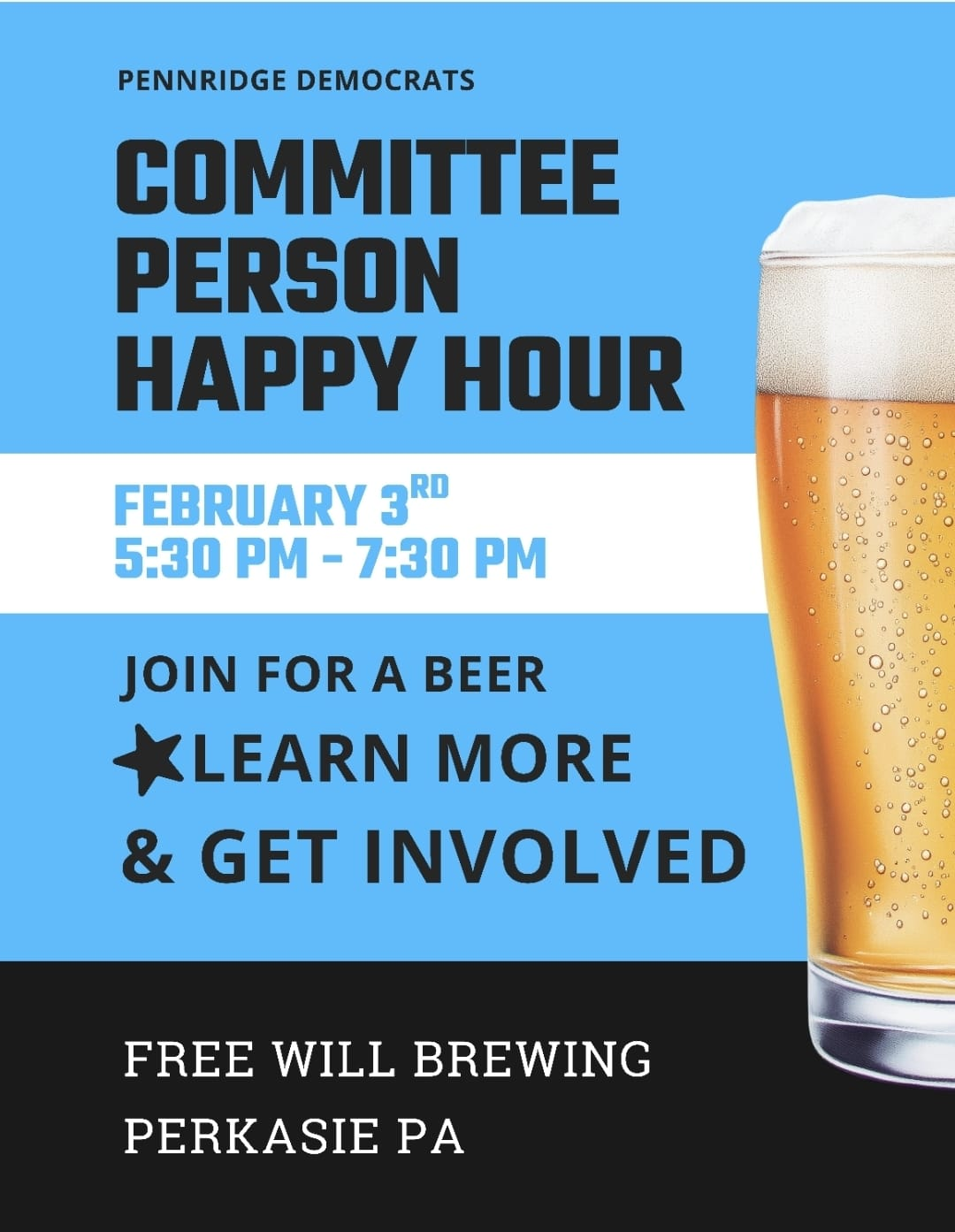 Interested in running for Democratic Committee? Join us for a casual happy hour at Free Will Brewing! This is an open event where you can ask questions, chat with current committee members, and learn what it takes to get involved in local Democratic politics. No commitment required, just come hang out and have a couple beers with us.